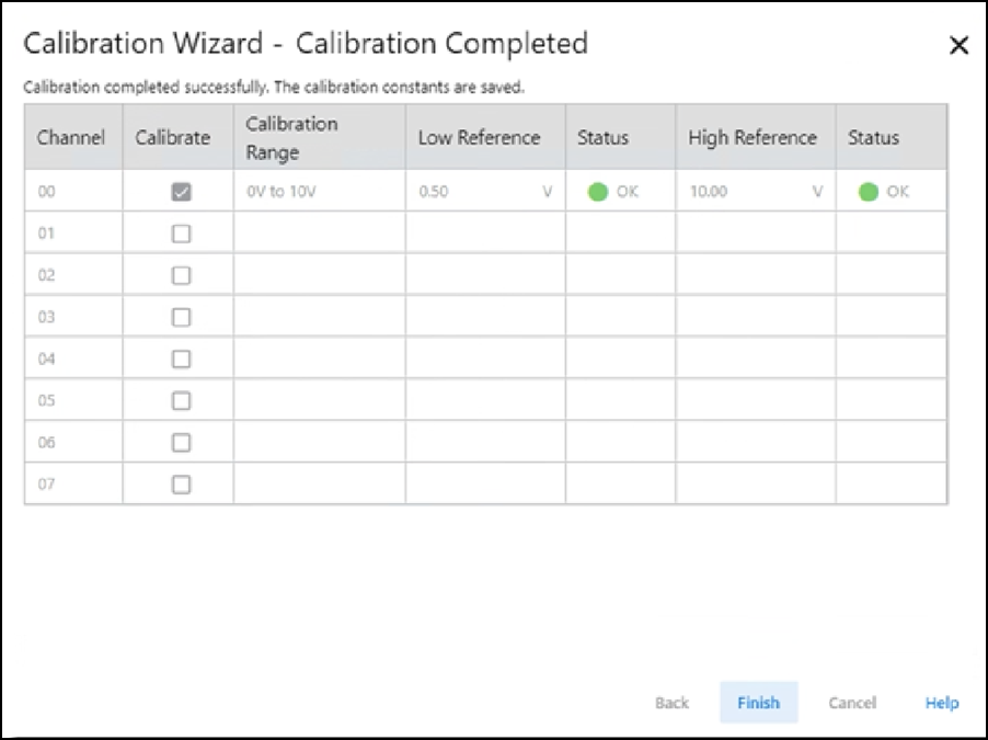- 选择 Next。 随即会出现 High Reference Results 对话框,指示校准通道的状态。