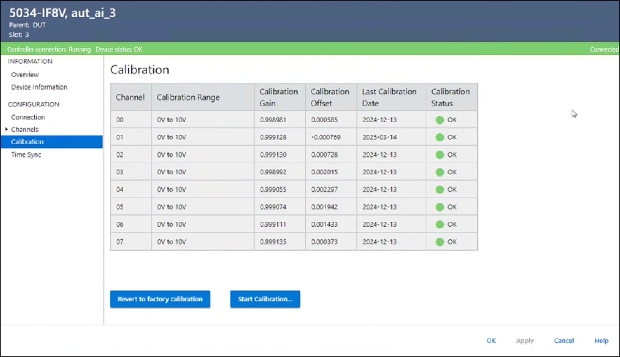 - 在 Module Properties 对话框的 Calibration 视图中,选择 Start Calibration。