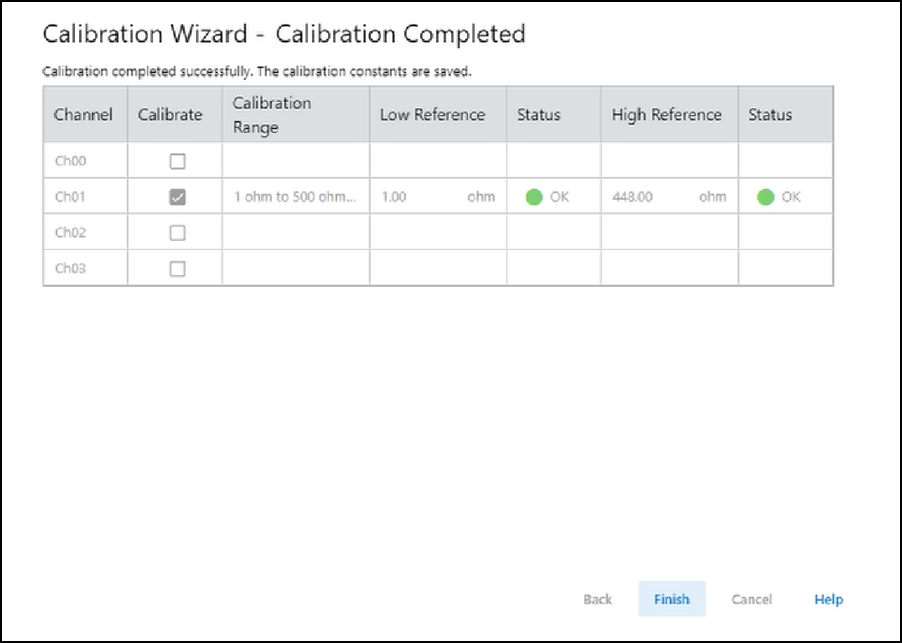- 选择 Next。随即会出现 High Reference Results 对话框,指示校准通道的状态。