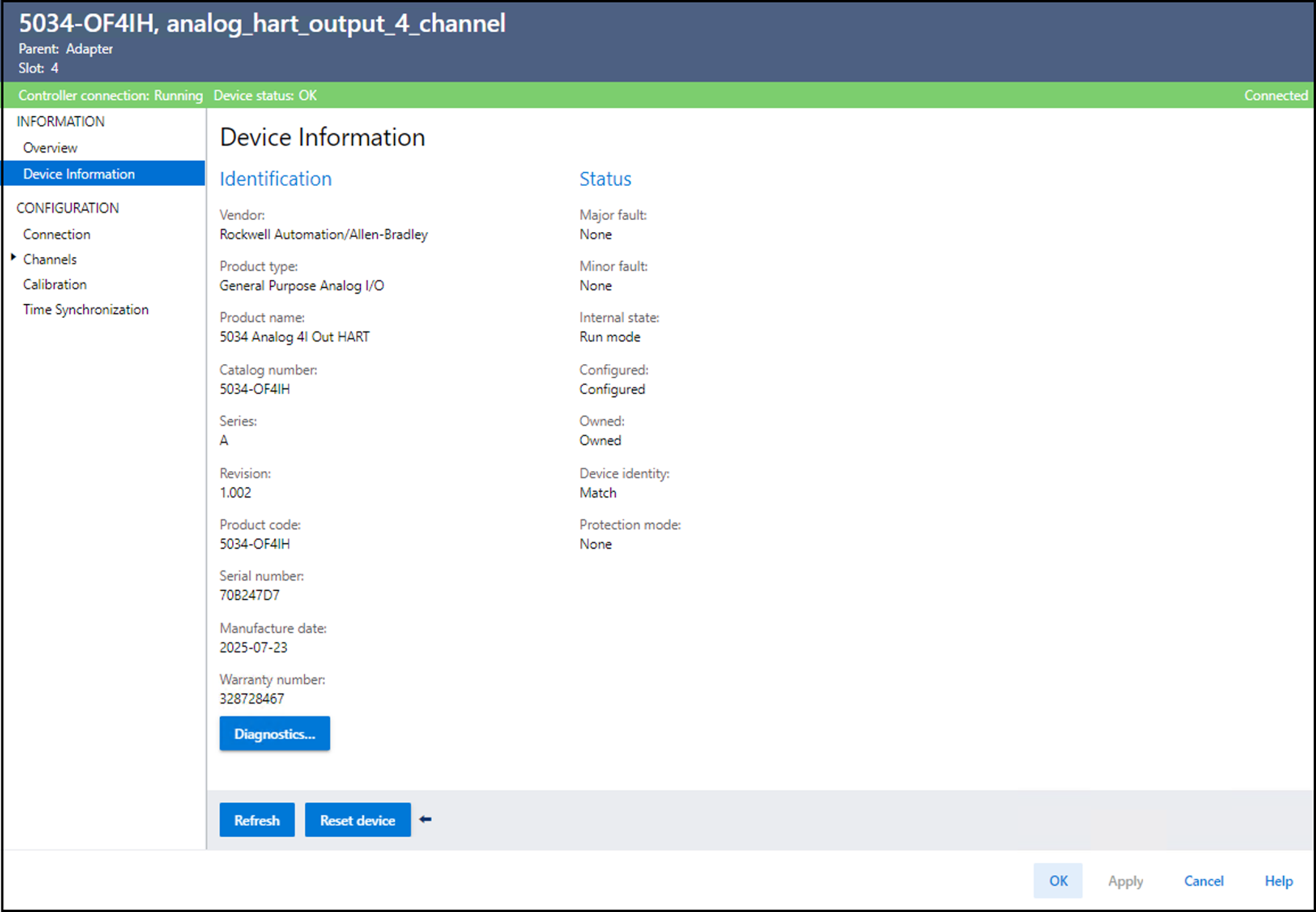 要查看设备诊断,在 Device Information 视图中选择 Diagnostics。