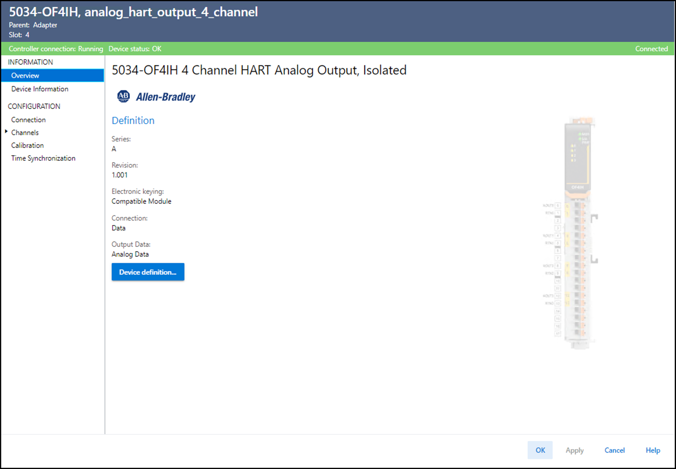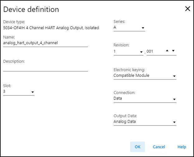 Connection | 指定设备和控制器之间传输的数据类型。 对于 Listen Only 选项,控制器和设备建立通信,控制器不向设备发送任何配置或输出数据。 建立完整的输入数据连接,但这取决于宿主控制器和设备之间的连接。 |