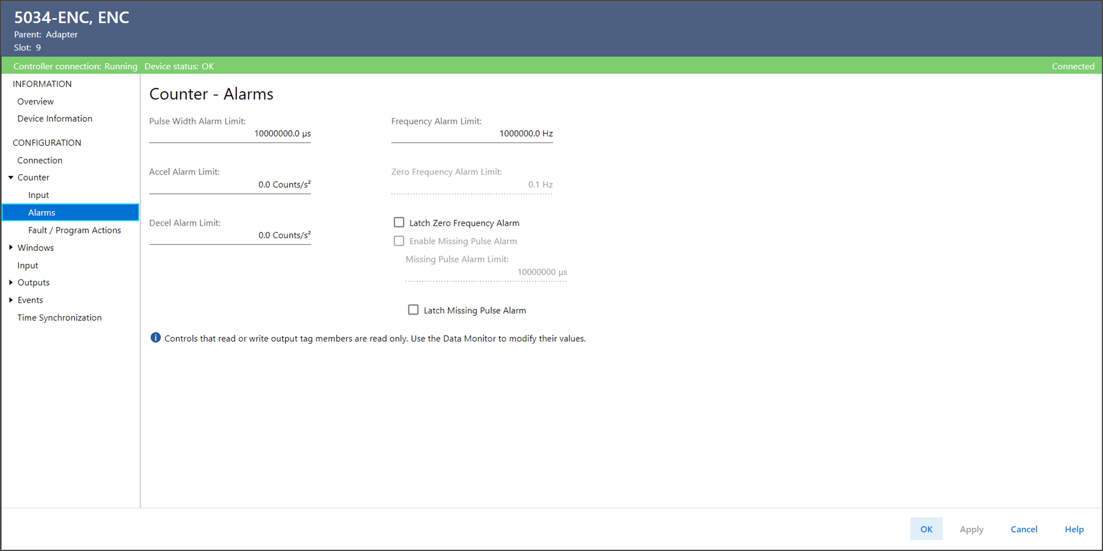 Counter – Alarms 视图