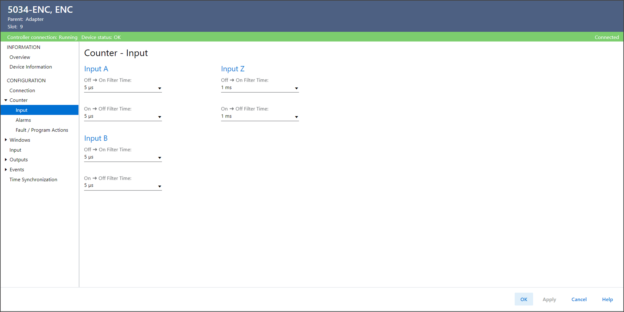 使用 Counter – Input 配置不同输入的 Off → On 和 On → Off 滤波时间。