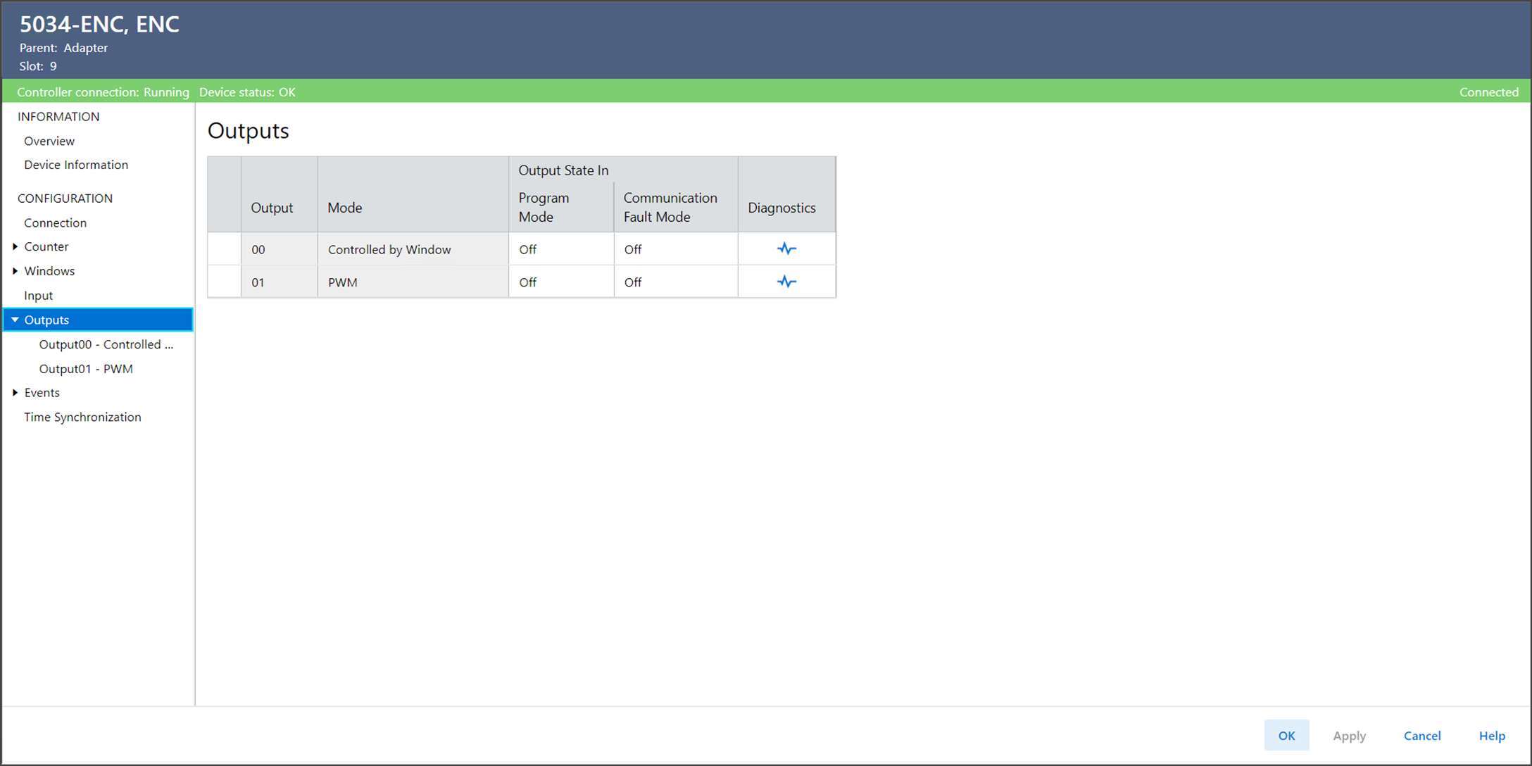 要查看 Outputxx diagnostics,选择 Diagnostics Outputs 视图。