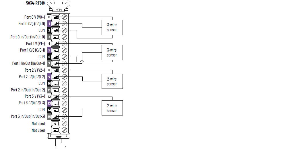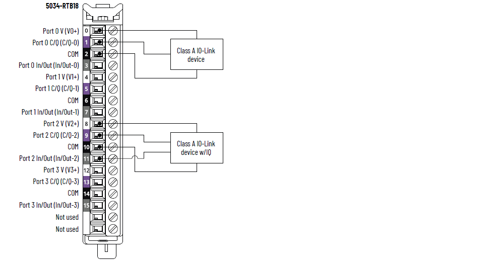 5034-IOL4 和 5034-IOL4XT 接线图 – IO-Link 模式