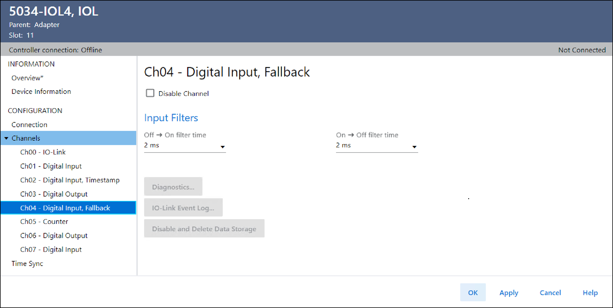 当通道配置为“Digital Input, Fallback”时,该视图可用。 只能在项目在线时执行某些任务。