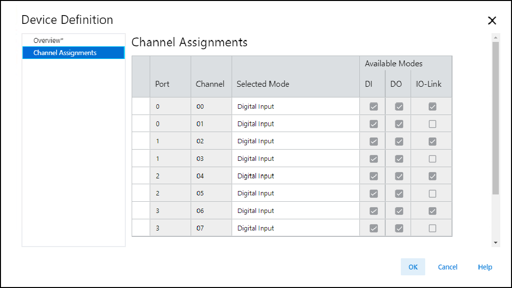 Device Definition - Channel Assignments 视图示例