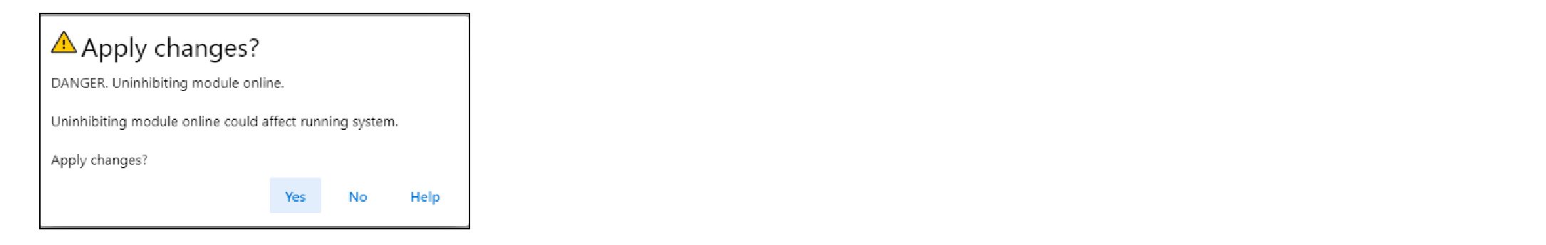 - 转到 IO-Link 主站 Module Properties → Connection,清除 Inhibit Module 复选框并选择 Apply。如果出现 Apply changes warning 对话框,则选择 Yes。