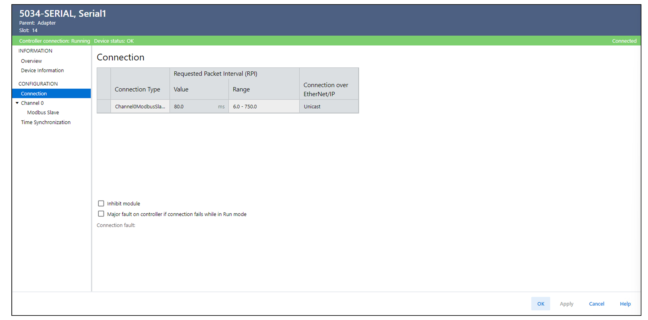 Modbus Slave 通道 Connection 视图示例