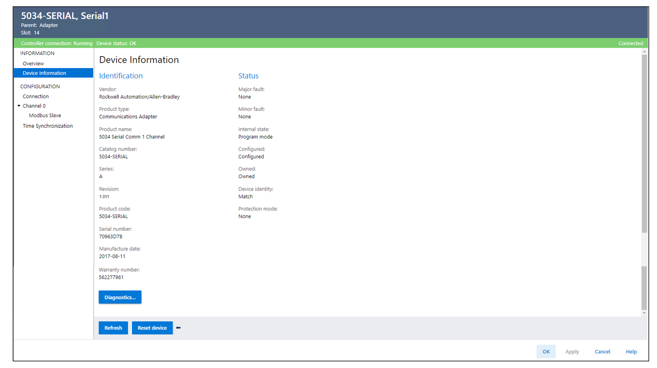 要查看设备诊断,在 Device Information 视图中选择 Diagnostics。