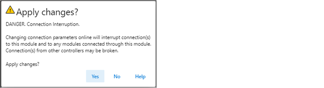 - 在Module Properties对话框上,选择OK。重要提示:如果试图更改本页的IP地址,则将显示下列警报: