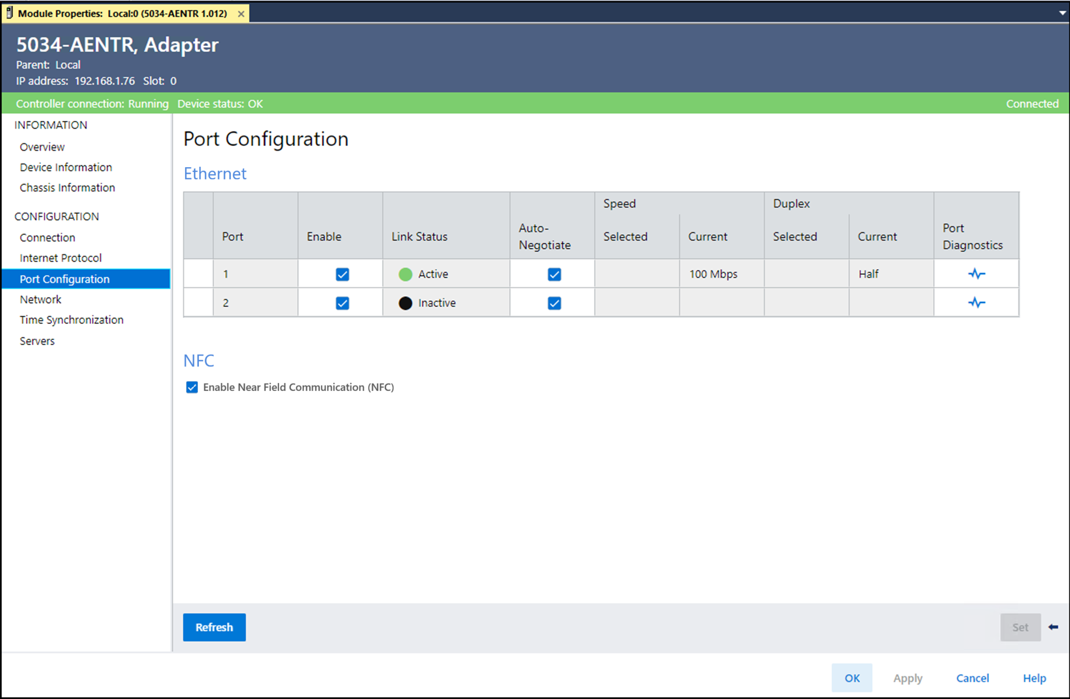 - 从Device Information视图中,选择Port Configuration。