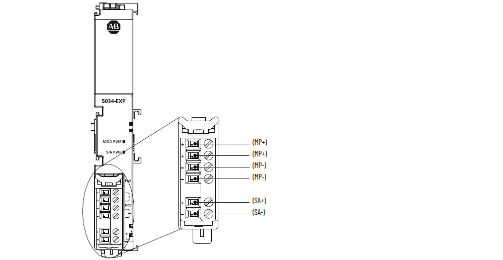 支持 RTB | 可拆卸端子块出厂时配有扩展电源。 您可单独订购额外的螺纹式 (5034-AENRTB-QTY5) 和推入式弹簧型 (5034-AENRTBS-QTY5) 可拆卸端子块。 |