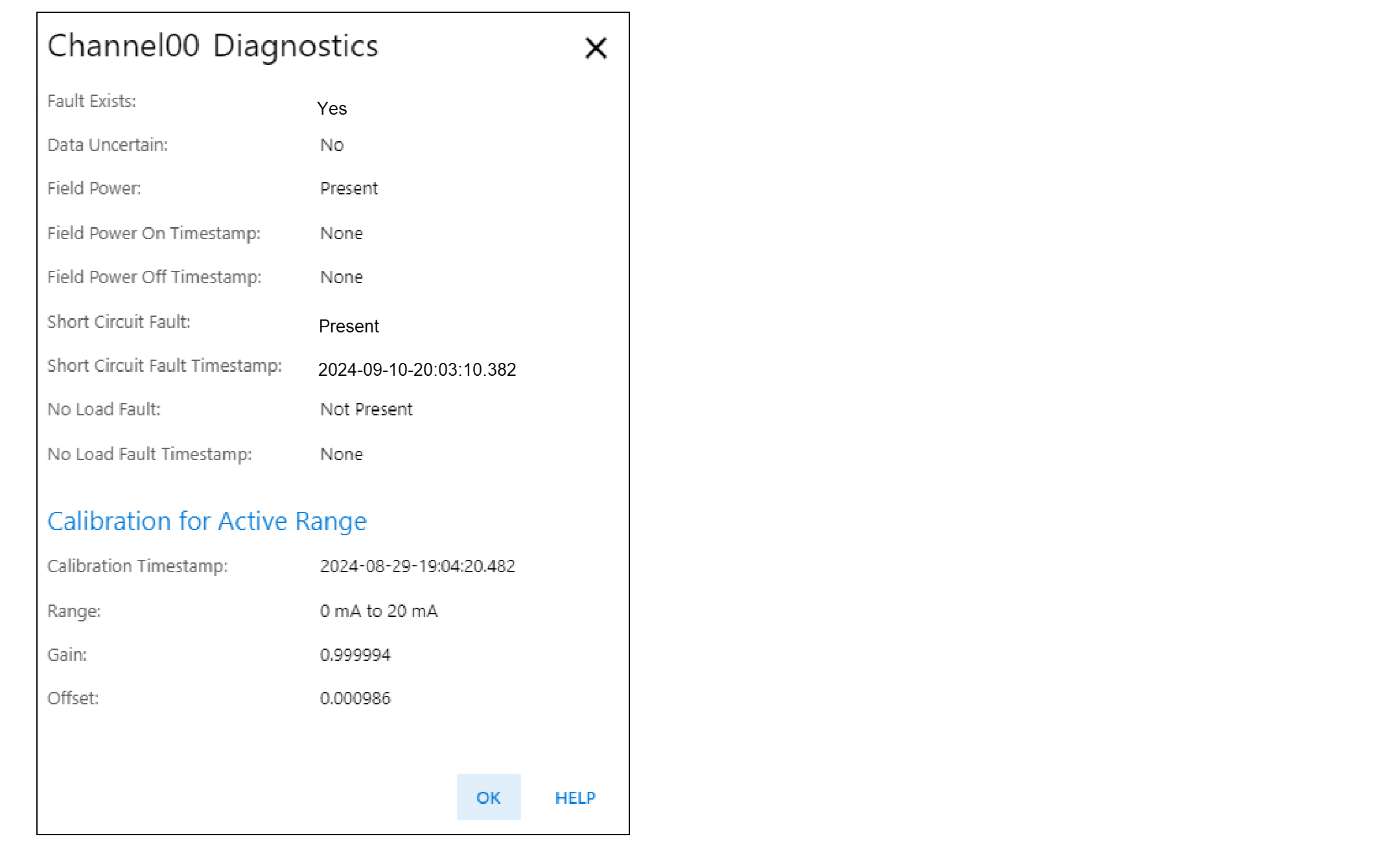 以查看通道的诊断条件。存在短路故障的通道诊断对话框示例