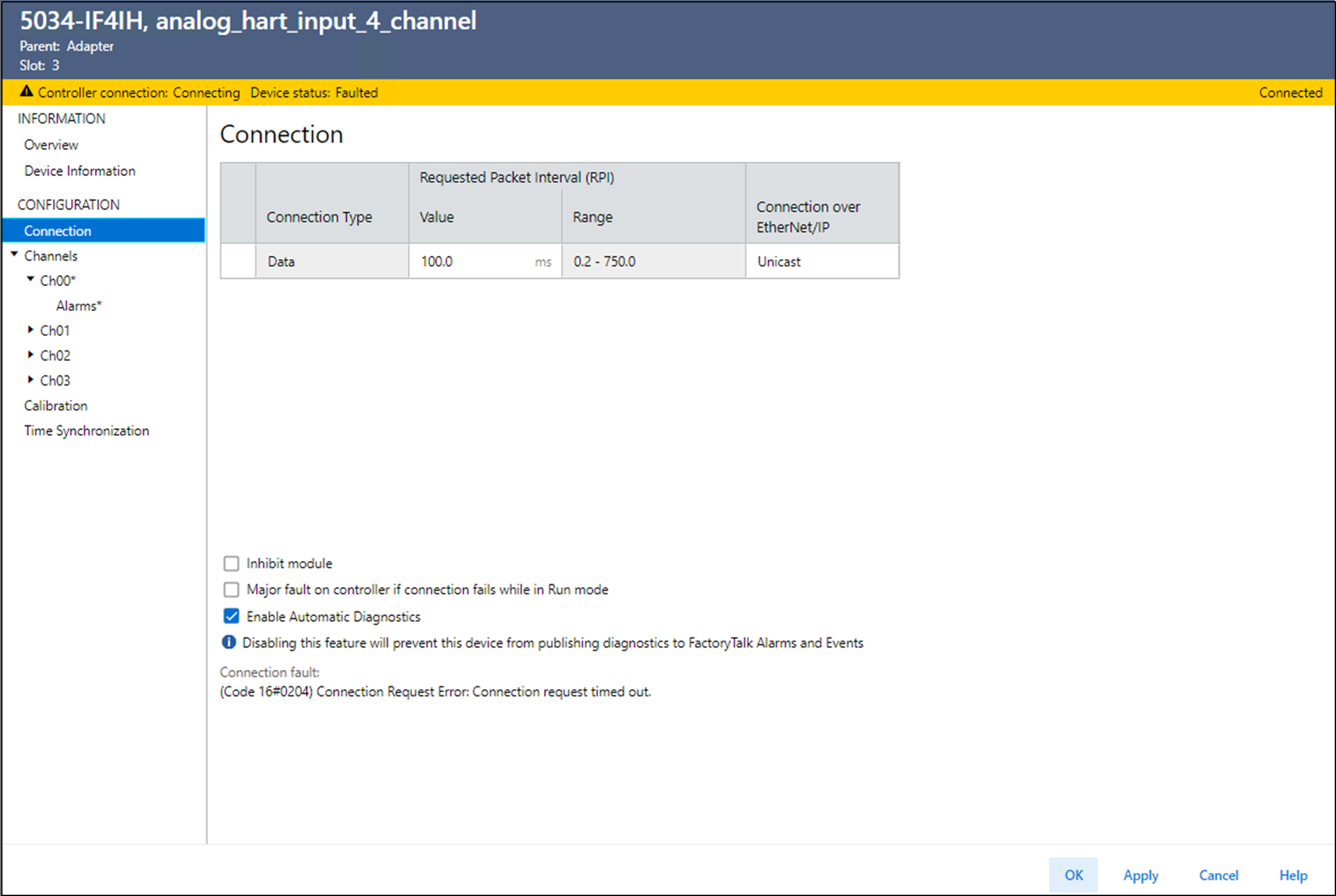匹配错误 | 转到 Device Information 视图,确认物理模块兼容或匹配配置标识。有关更多详细信息,请参见 Electronic Keying in Logix 5000 Control