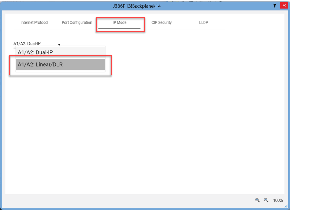 - 从 IP Mode 选项卡的下拉菜单中,选择新模式。