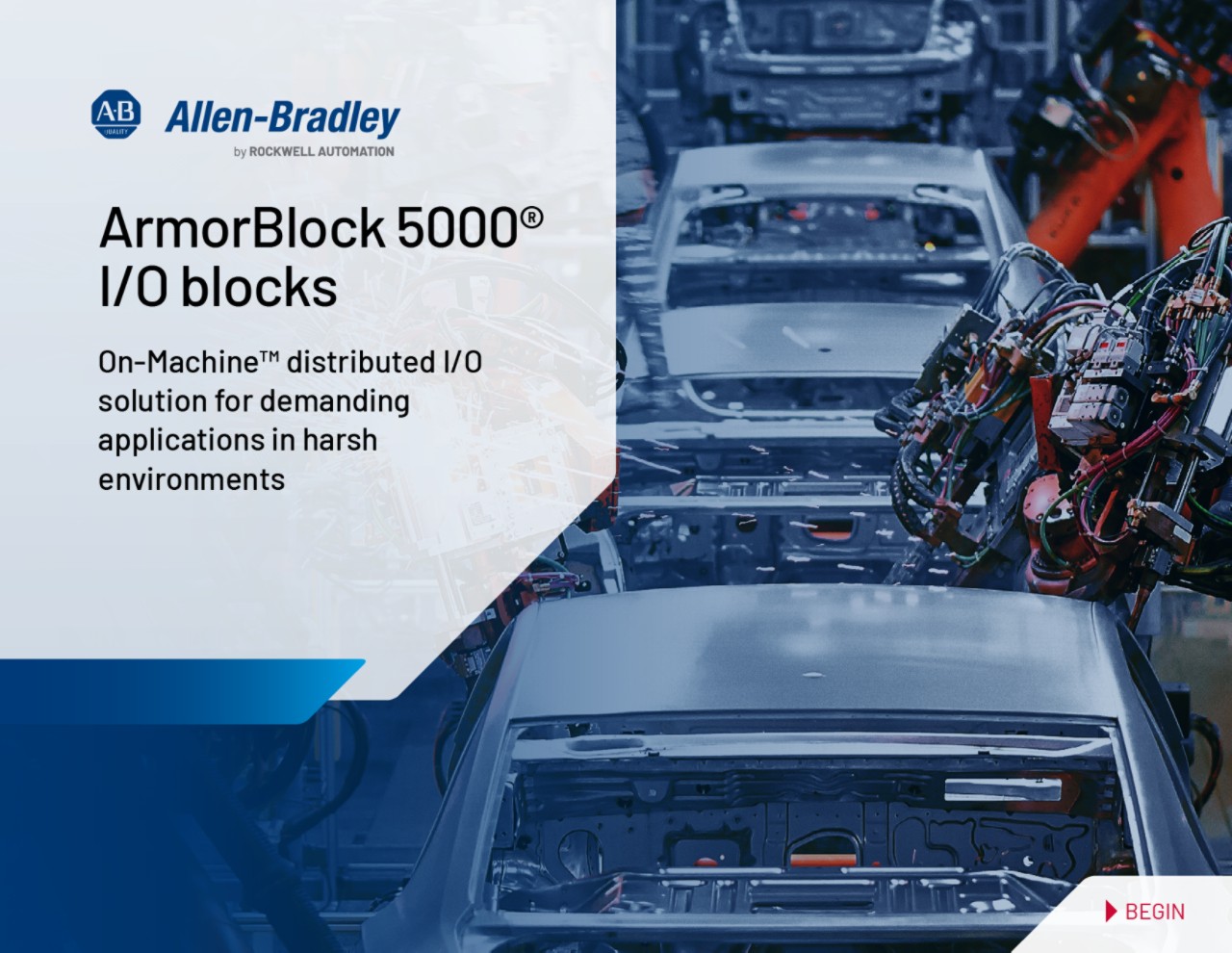 我们的 ArmorBlock 5000 I/O 解决方案专为在恶劣环境中进行 On-Machine™ 使用而设计,提供可扩展性,有助于减少总安装时间和成本以及计划外停机时间。工业级强化块的防护等级高达 IP69K,提供三种电源变体、灵活的安装选项以及 IO-Link A 类和 B 类端口。此外,分布式 I/O 块与 Studio 5000® 设计软件集成,提供卓越的性能并简化制造过程。